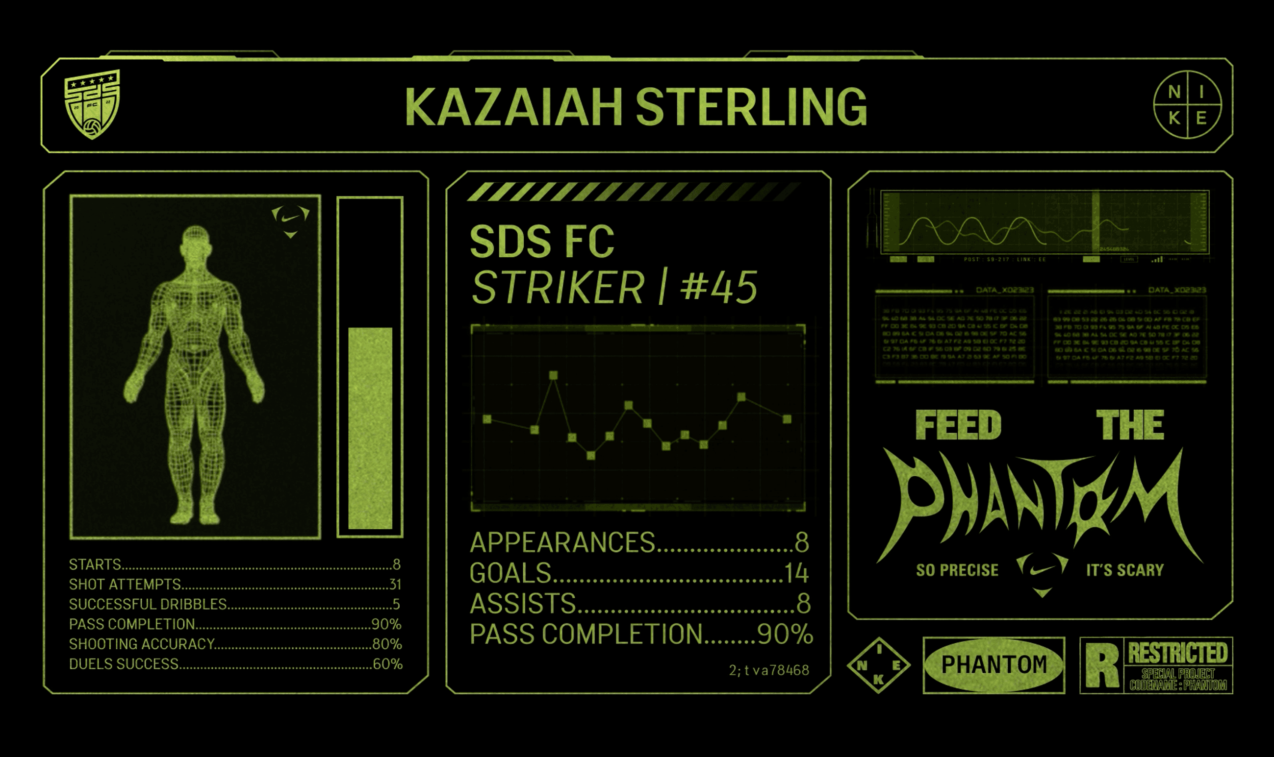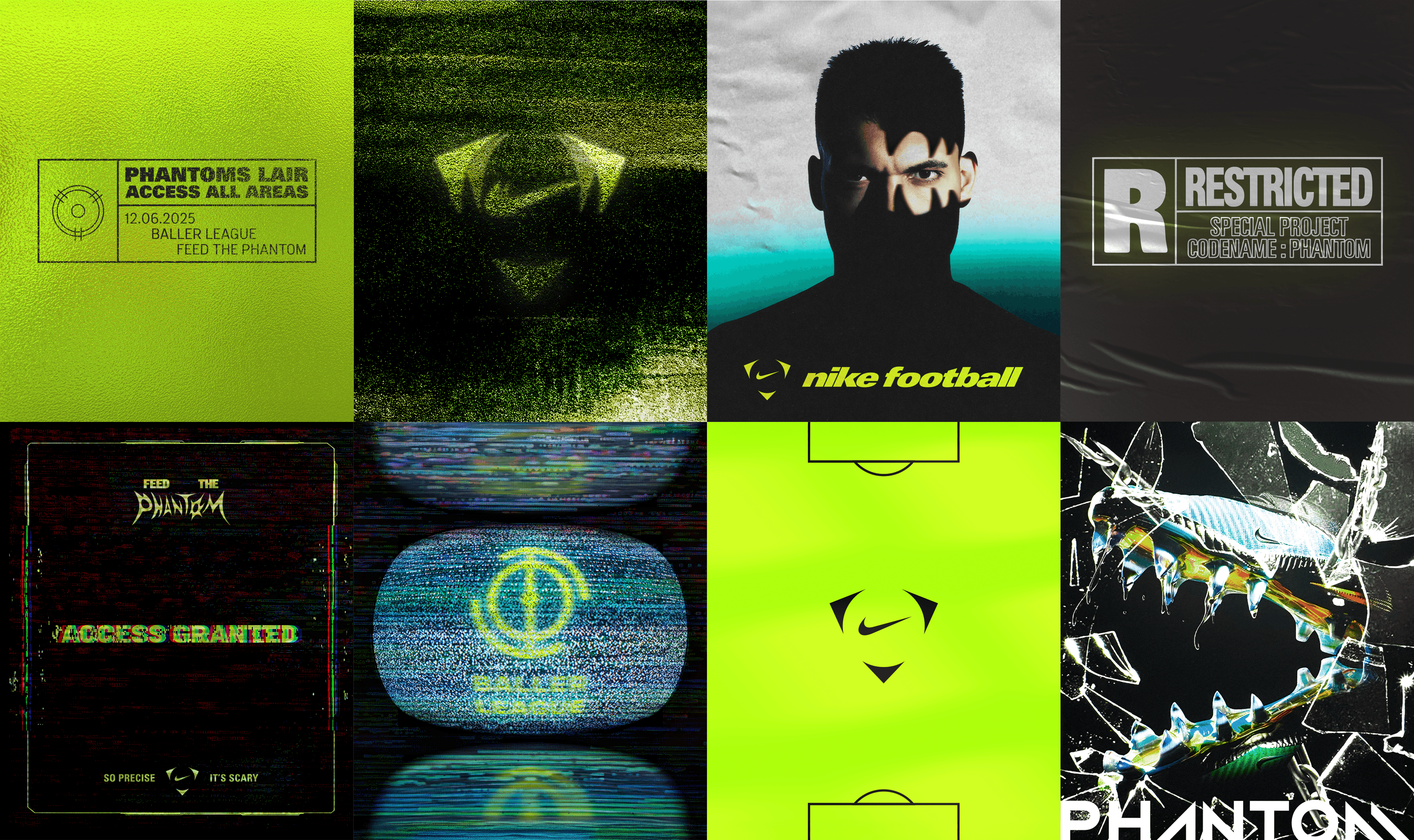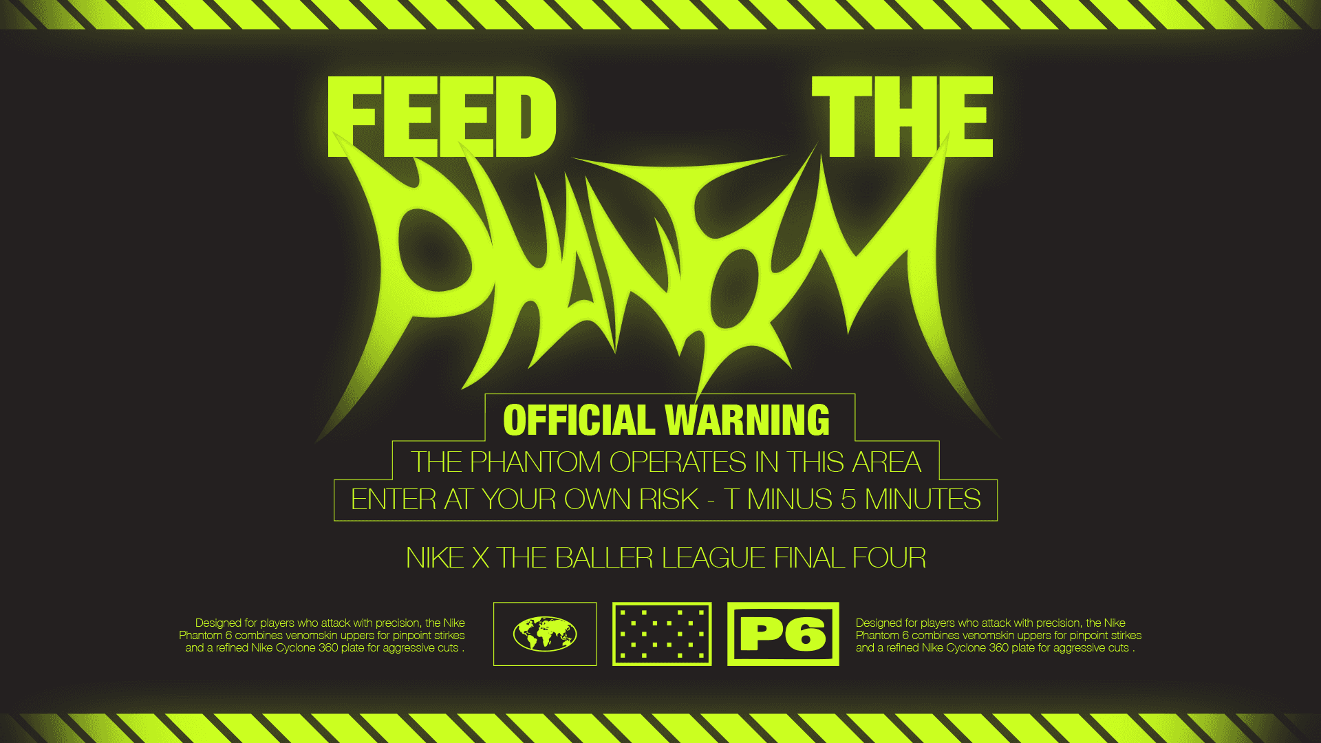 The Nike x Baller League Final Four takeover launched the Nike Phantom 6 through an immersive lab style takeover. The 'Phantom' invited the top ballers to enter and earn their boots. I developed the creative concept, graphic identity of the space and on-screen animations, creating a space driven by visual language.